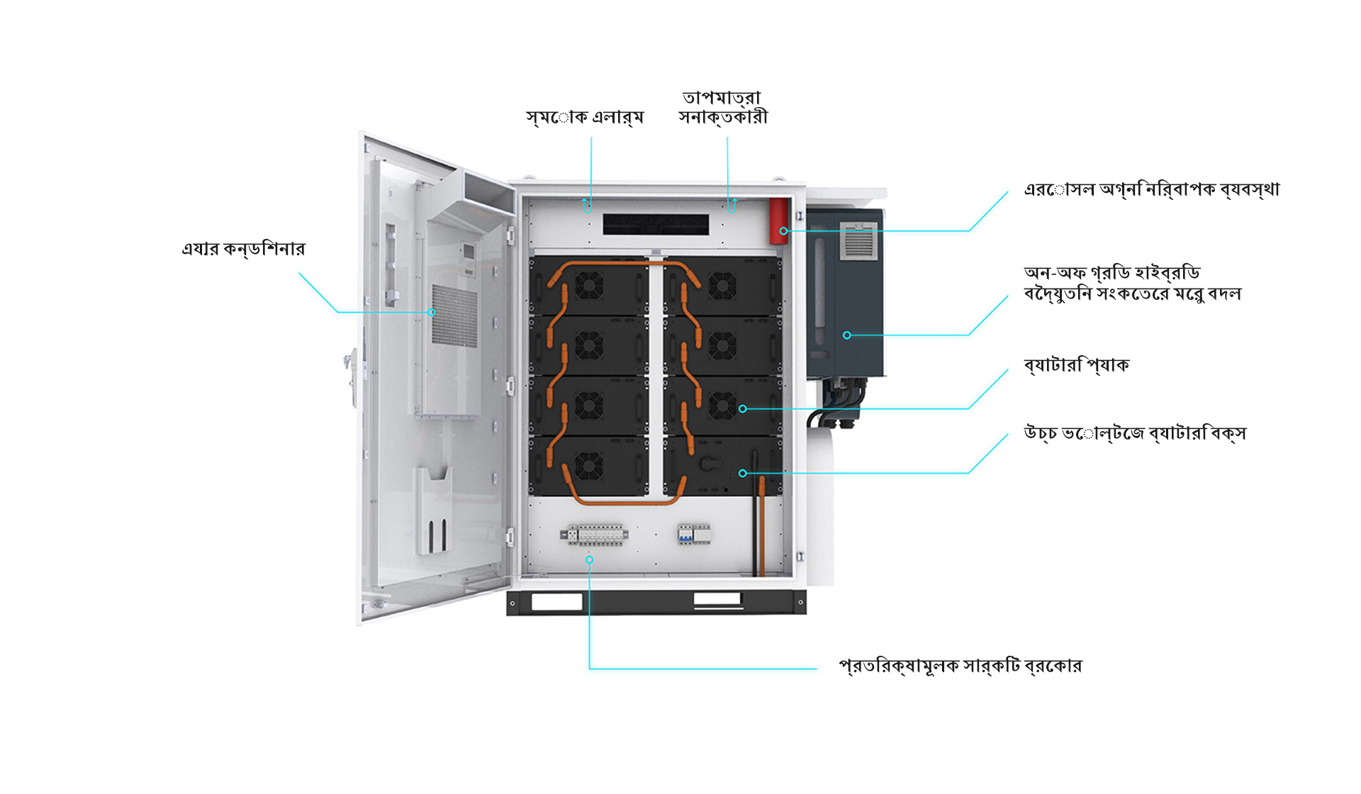 কোবাল্ট-মুক্ত লিথিয়াম আয়রন ফসফেট (এলএফপি) ব্যাটারি, প্যাক + সিস্টেমের ট্রিপল ফায়ার প্রোটেকশন ডিজাইন + ক্যাবিনেট থার্মাল ইনসুলেশন, স্বাধীন রিলে সুরক্ষা, সেল-লেভেল থার্মাল মনিটরিং, এবং ব্যর্থতার একক পয়েন্টের শারীরিক বিচ্ছিন্নতা উল্লেখযোগ্যভাবে সিস্টেম সুরক্ষা উন্নত করে