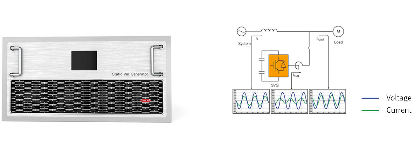 With the development of power electronics technology, a variety of non-linear and time-varying electronic equipment are used on a large scale and the requirements for the power supply system are getting higher and higher, thus the traditional commonly used shunt capacitor compensation mode has been unable to meet the demands of controlling some of the distribution system with impulse loads (such as welding machines, rolling mills, Banbury mixers, etc.). As one of the core equipment and technology of FACTS (Flexible Alternating Current Transmission System), the Static Reactive Generator SVG is used in the distribution system to realize continuous and rapid reactive power compensation from inductive to capacitive, effectively suppressing voltage fluctuation and system oscillation, improving three-phase imbalance of loads and enhancing system stability. It is the optimal solution in the field of reactive power control.