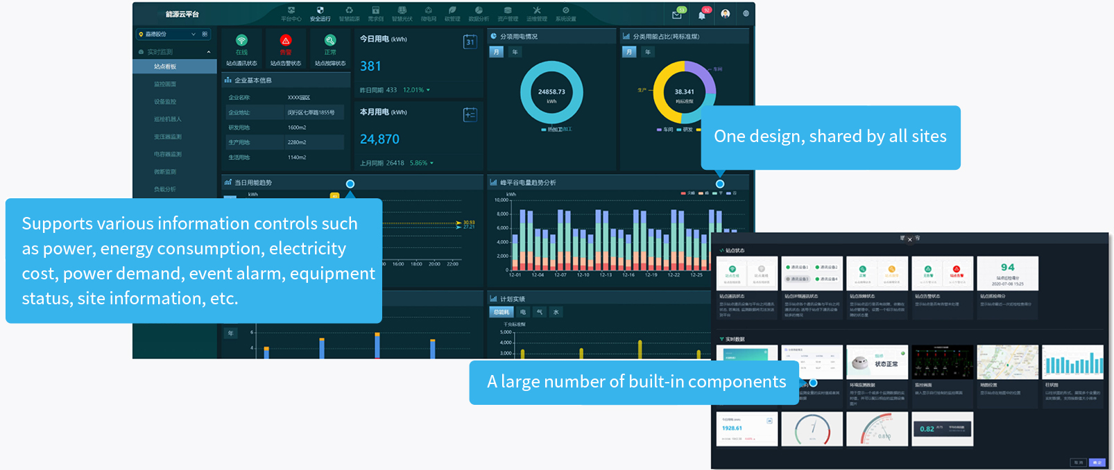 Application layer: the system platform can be composed of single or multiple servers, which carries out real-time data acquisition, data storage, calculation and analysis, and provides services such as real-time monitoring, energy-efficiency management, and energy-consumption analysis.