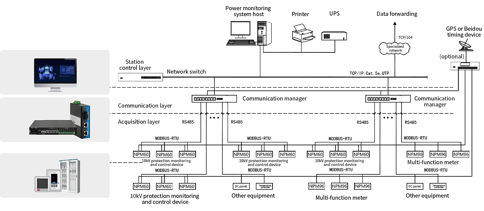NPM3000-D Power Monitoring System is a system specialized in monitoring and managing power systems. It can timely monitor each equipment of the power system, and discover the power failure in time, so as to avoid the serious consequences caused by fault deterioration. The system has a variety of functions, e.g. power data acquisition and processing: the power monitoring system can collect various data in the power system, including voltage, current, active power, reactive power, frequency, and so on. These data are collected and processed for convenient inspection and analysis of the operating status of the power system.