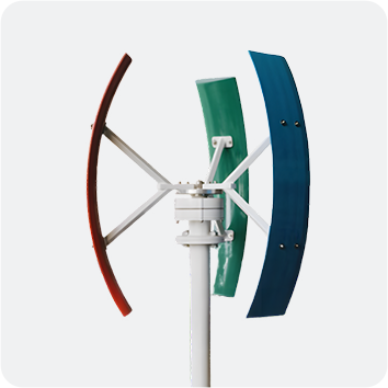 Вертикальная ось ветрогенераторов серии KLD-WTV, диапазон мощности 100 Вт-20 кВт Ось вращения ее ветрогенератора перпендикулярна земле. По сравнению с ветряными турбинами с горизонтальной осью, ветряные турбины с вертикальной осью не должны стоять лицом к ветру при изменении направления ветра, поэтому конструкция более проста, а гироскопическая сила ветрового колеса также снижена. Лопасти ветрогенераторов с вертикальной осью обычно симметричны и могут принимать ветер в любом направлении, поэтому они подходят для мест, где направление ветра не фиксировано.